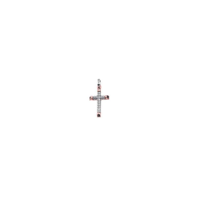 Croce Oro Bianco Rosa Diamante Zancan Collezione Insigna Appartiene alla prestigiosa collezione Insigna firmata Zancan ed è un gioiello esclusivo Per uomo.