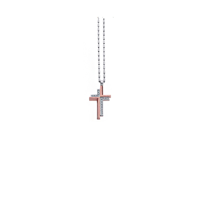 Croce Oro Bianco Rosa Diamanti Zancan Collezione Insigna Appartiene alla prestigiosa collezione Insigna firmata Zancan ed è un gioiello esclusivo Per uomo.