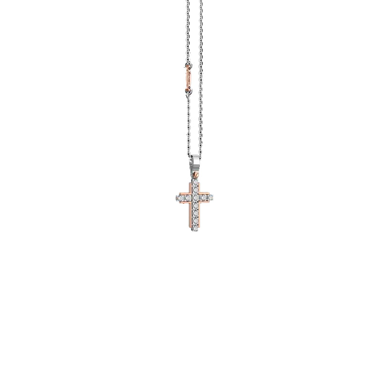 Croce Oro Bianco Rosa Diamanti Zancan Collezione Insigna è uno splendido gioiello della nostra offerta di collane